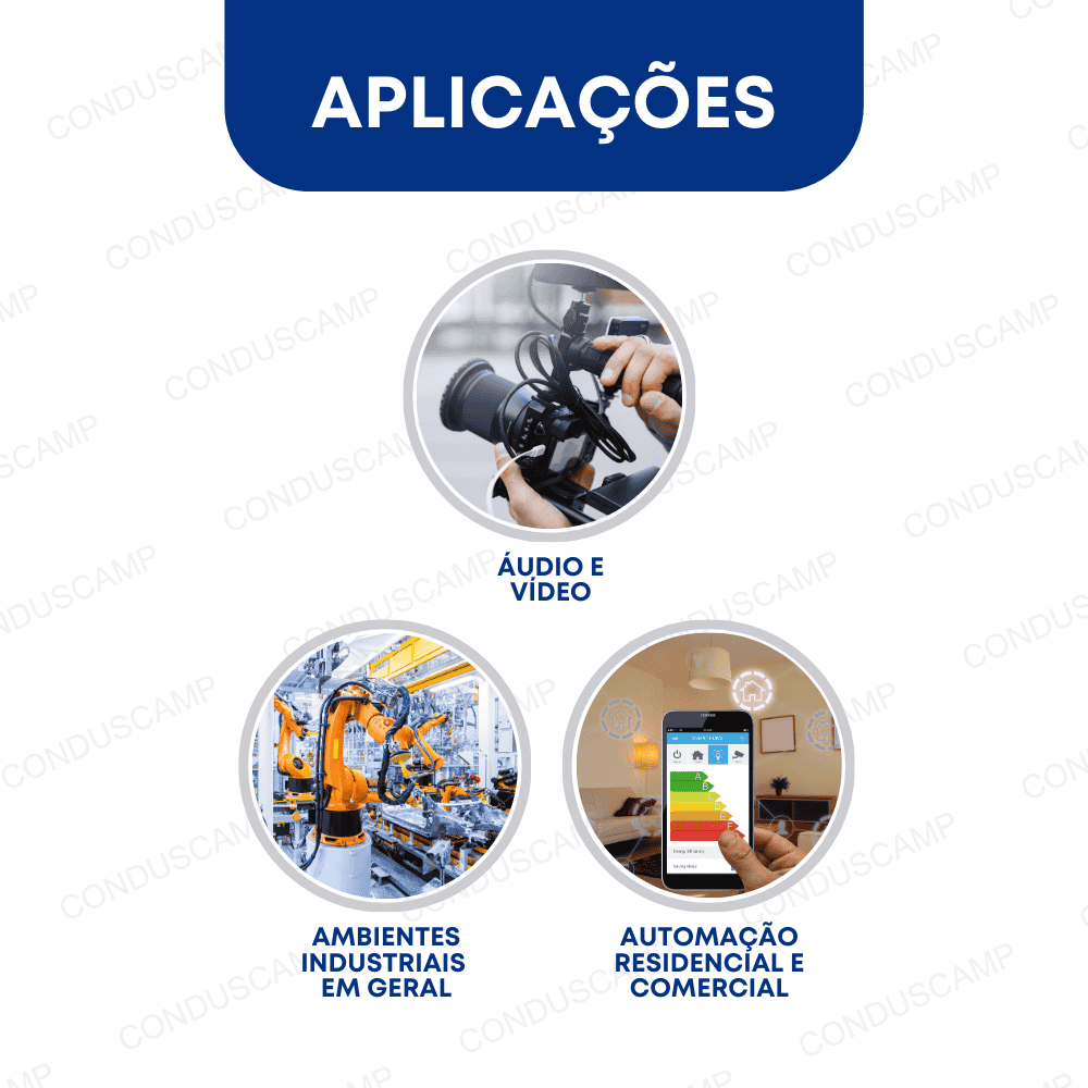 Os cabos AFS são frequentemente utilizados em instalações elétricas industriais e comerciais, onde há necessidade de transmissão de dados e sinais de áudio e vídeo de baixa tensão. Devido à sua dupla blindagem, os cabos AFS oferecem proteção contra interferências eletromagnéticas externas, minimizando a perda de sinal e melhorando a qualidade de transmissão.