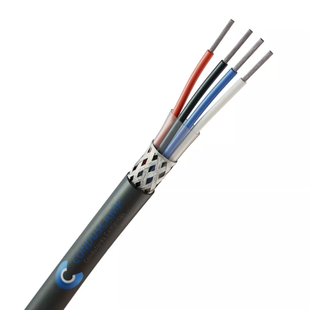 O cabo é produzido 100% com cobre eletrolítico estanhado. Sendo o condutor formado por fios, com uma classe de encordoamento 5 (flexível).