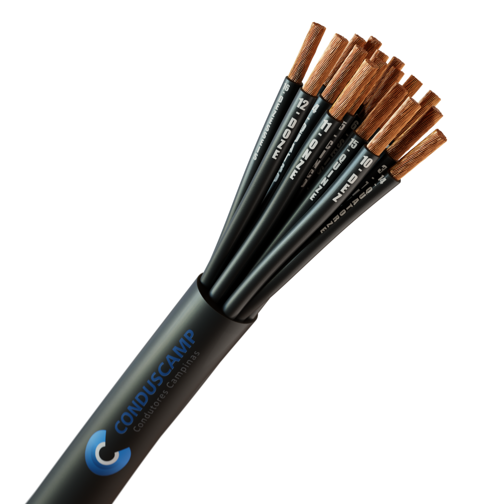 O cabo é produzido 100% com cobre eletrolítico nu. Sendo o condutor formado por fios, com uma classe de encordoamento 5 (flexível).