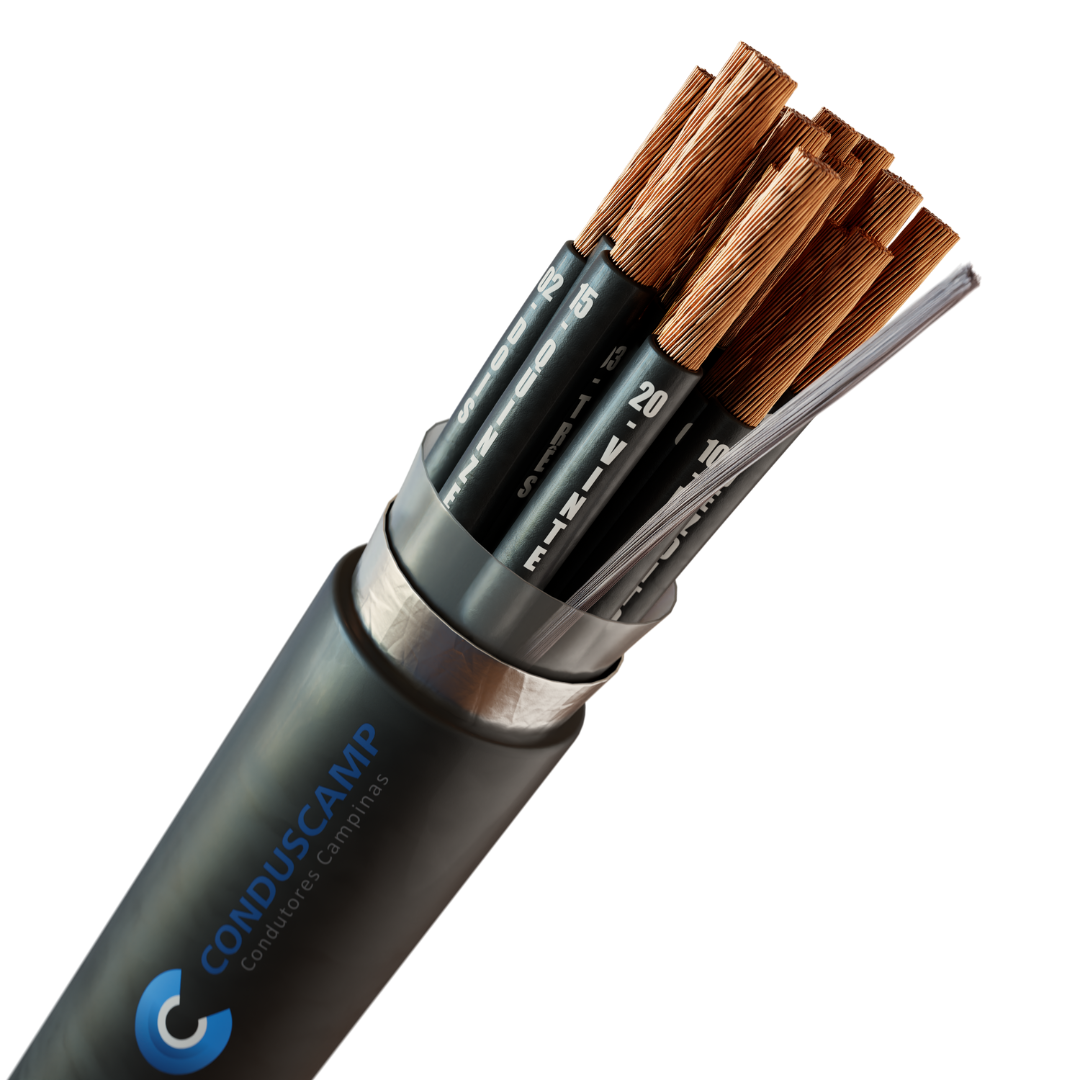 O cabo de comando também é conhecido como cabo de controle. É um cabo flexível, suporta uma tensão de até 500v para bitolas de 0,50mm2 até 1,00mm2 e até 100v para bitolas superiores a 1,50mm2, formado por fios de cobre eletrolítico nu, com classe de encordoamento 5 e isolação em PVC, no qual suporta uma temperatura de até 70 graus.