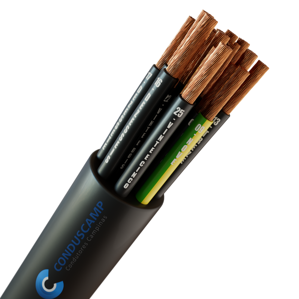 O cabo é produzido 100% com cobre eletrolítico nu. Sendo o condutor formado por fios, com uma classe de encordoamento 5 (flexível).