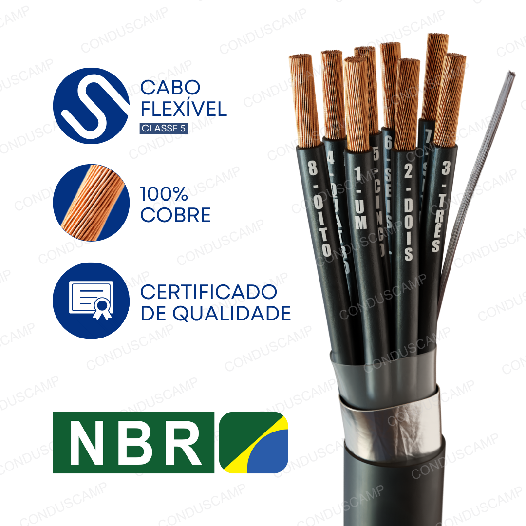 O cabo é produzido 100% com cobre eletrolítico nu. Sendo o condutor formado por fios, com uma classe de encordoamento 5 (flexível).