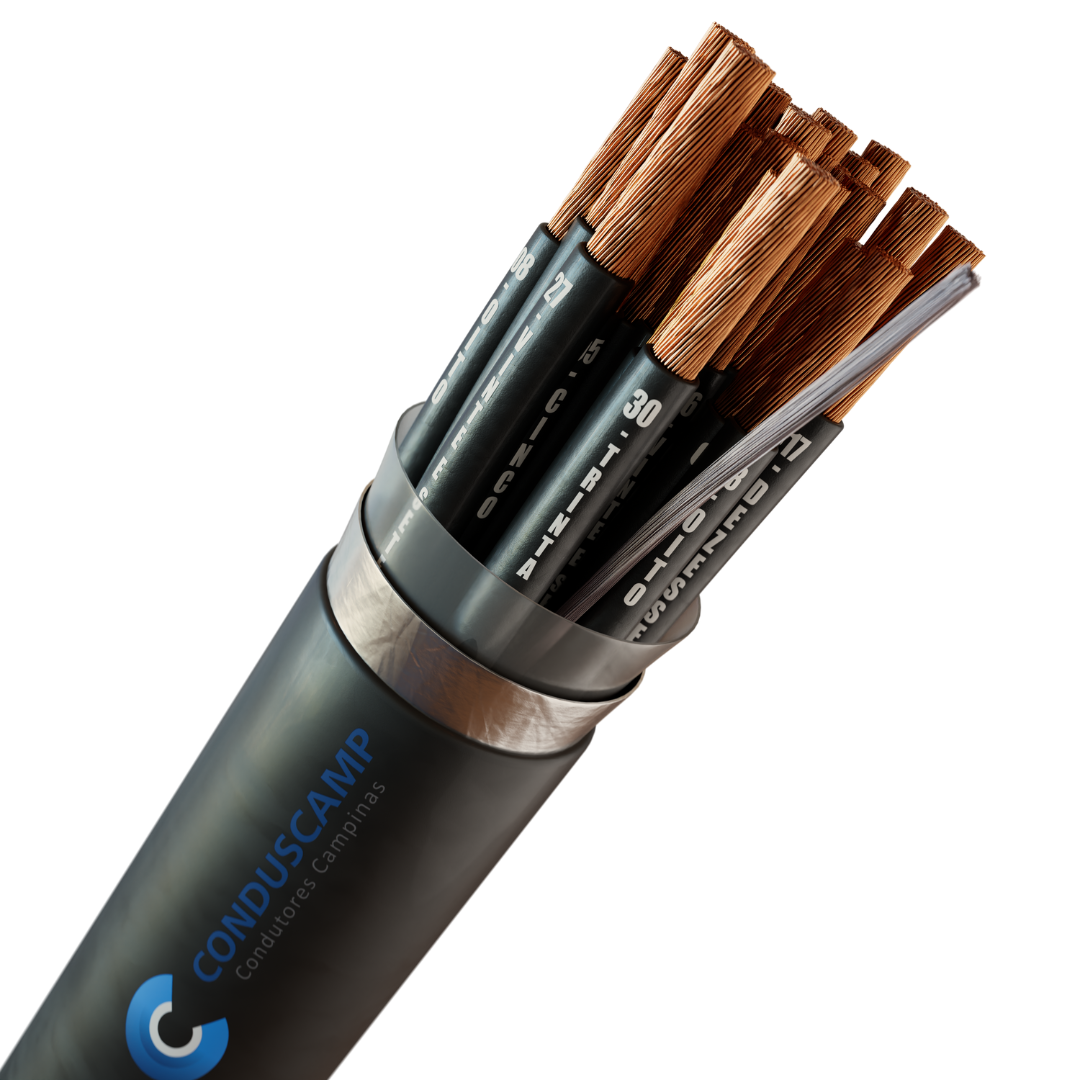 O cabo de comando também é conhecido como cabo de controle. É um cabo flexível, suporta uma tensão de até 500v para bitolas de 0,50mm2 até 1,00mm2 e até 100v para bitolas superiores a 1,50mm2, formado por fios de cobre eletrolítico nu, com classe de encordoamento 5 e isolação em PVC, no qual suporta uma temperatura de até 70 graus.