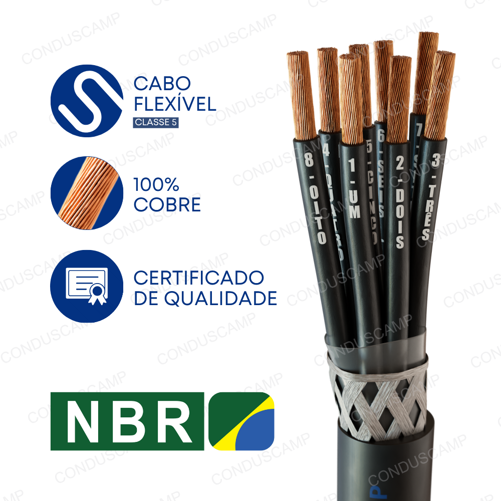 Os cabos de comando, também conhecidos como cabo de controle são utilizados em circuitos de comando/controle, sinalização, telecomando, alimentação de energia em instalações fixas, controle de equipamentos, acionamento de válvulas e bombas hidráulicas, ligação de painéis de controle com tensão nominal de até 1kV em áreas petroquímicas, químicas, siderúrgicas, ferroviárias e controle de sistemas elétricos em geral. Não aceitamos devolução de cabo cortado SOB MEDIDA e Venda por METRO.