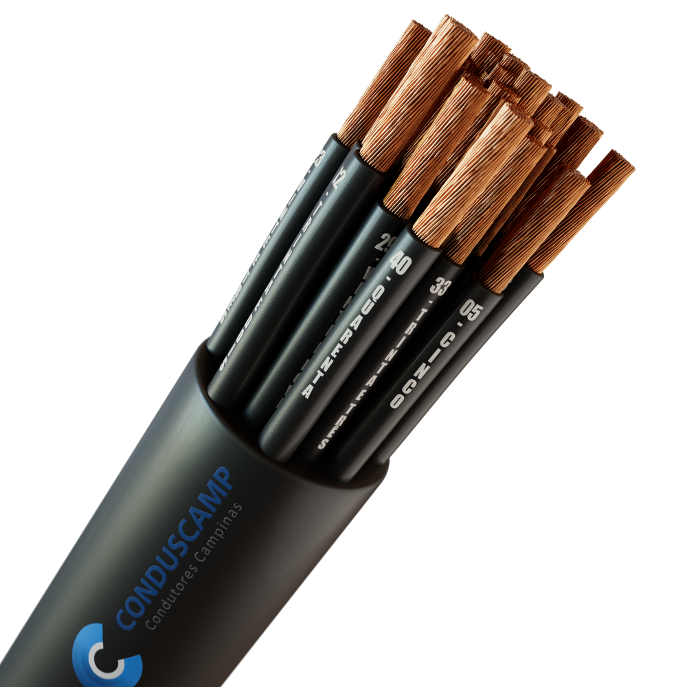 O cabo é produzido 100% com cobre eletrolítico nu. Sendo o condutor formado por fios, com uma classe de encordoamento 5 (flexível).