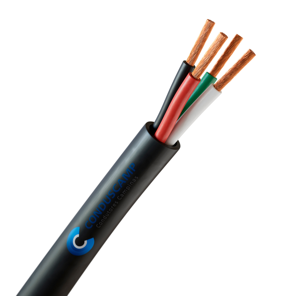 O cabo é produzido 100% com cobre eletrolítico nu. Sendo o condutor formado por fios, com uma classe de encordoamento 5 (flexível).