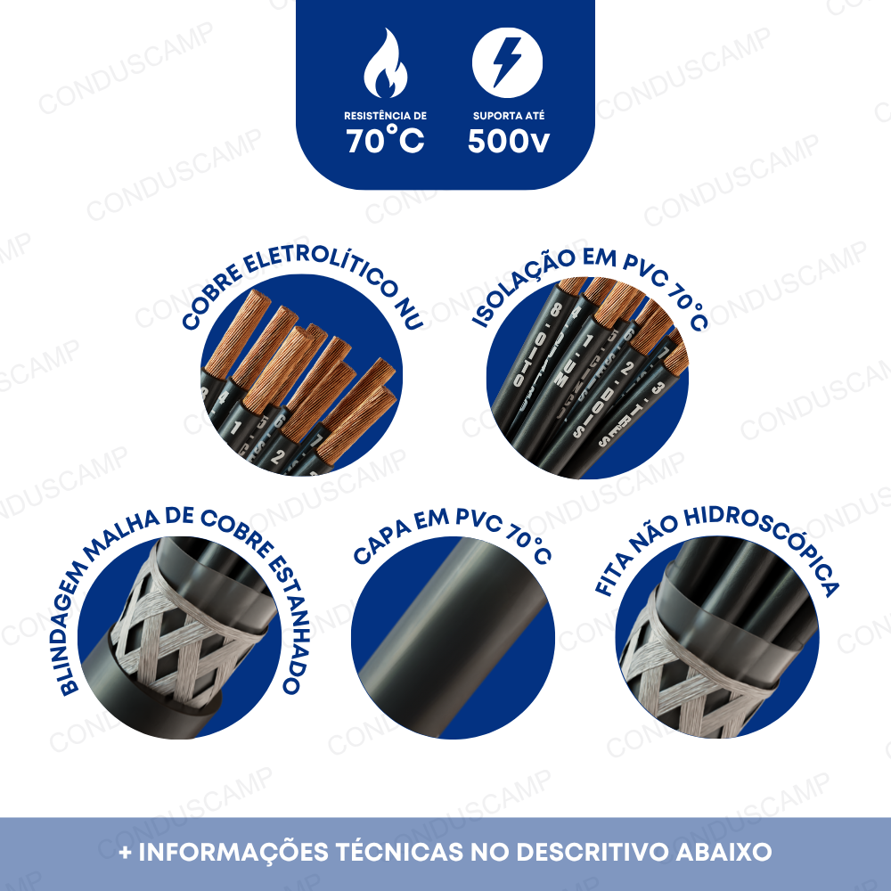 Além da opção blindado em malha de cobre estanhado você também encontra em nossa loja cabos de comando blindado em fita de alumínio e sem blindagem.