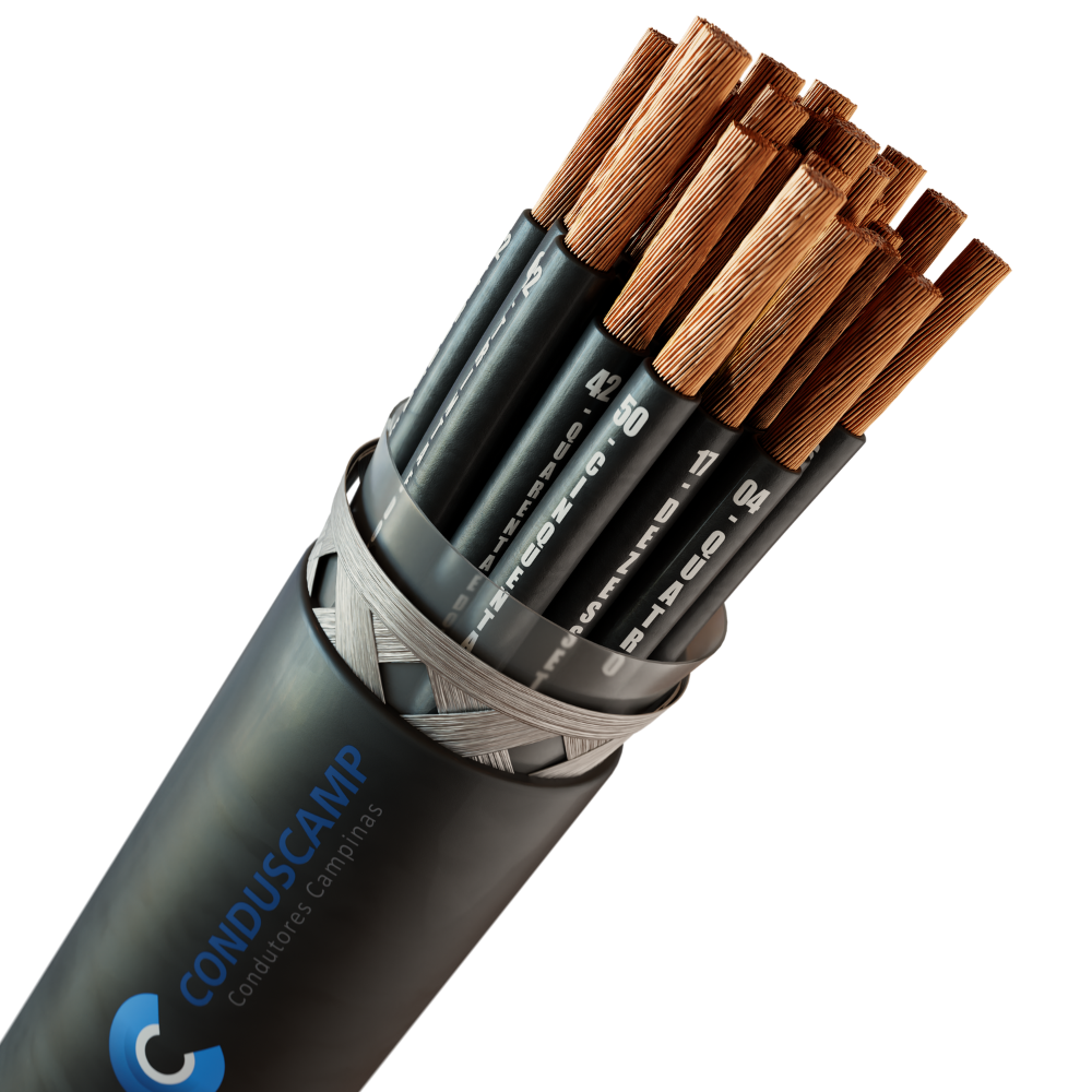 O cabo de comando também é conhecido como cabo de controle. É um cabo flexível, suporta uma tensão de até 500v para bitolas de 0,50mm2 até 1,00mm2 e até 100v para bitolas superiores a 1,50mm2, formado por fios de cobre eletrolítico nu, com classe de encordoamento 5 e isolação em PVC, no qual suporta uma temperatura de até 70 graus.