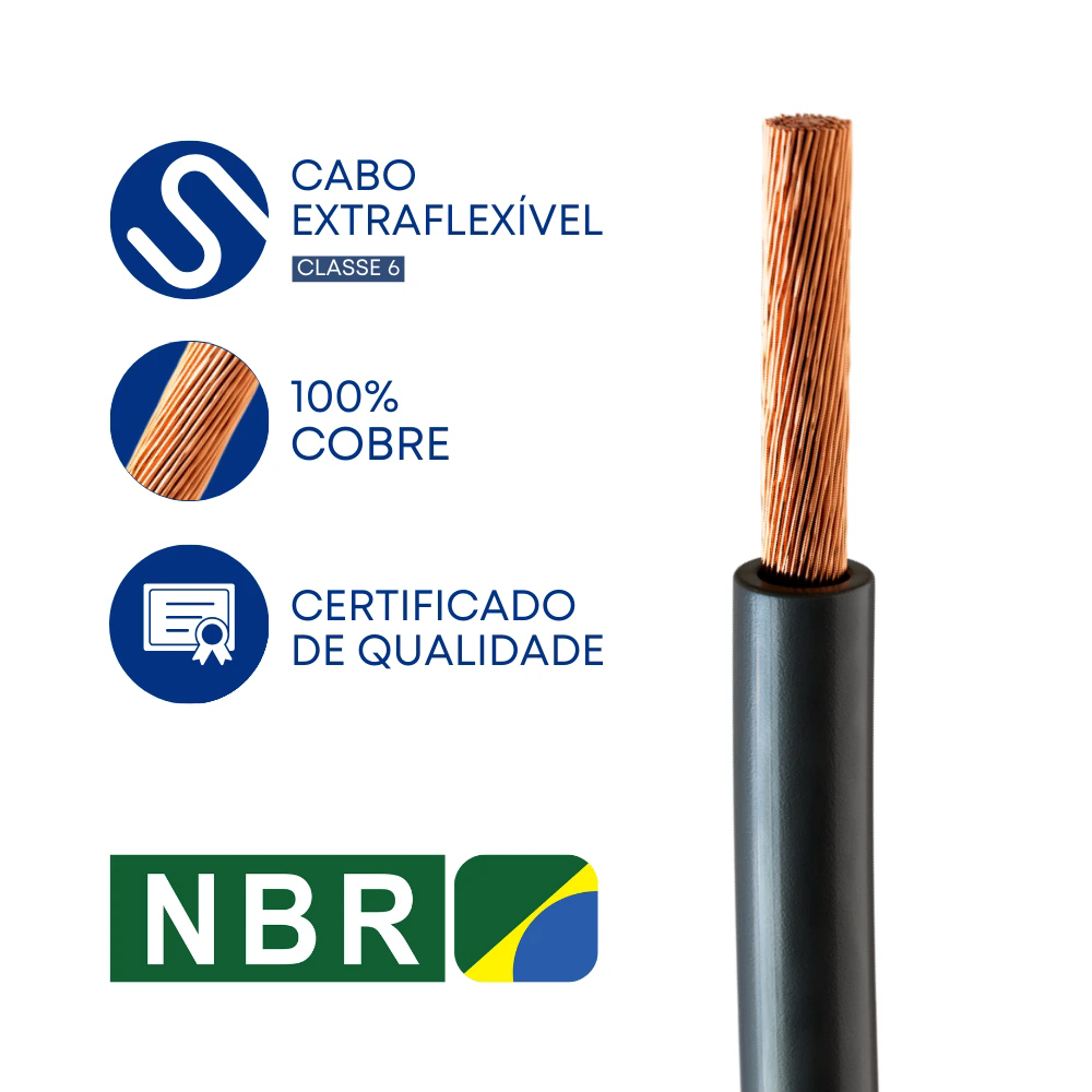 O cabo é produzido 100% com cobre eletrolítico nu. Sendo o condutor formado por fios, com uma classe de encordoamento 6 (extraflexível).