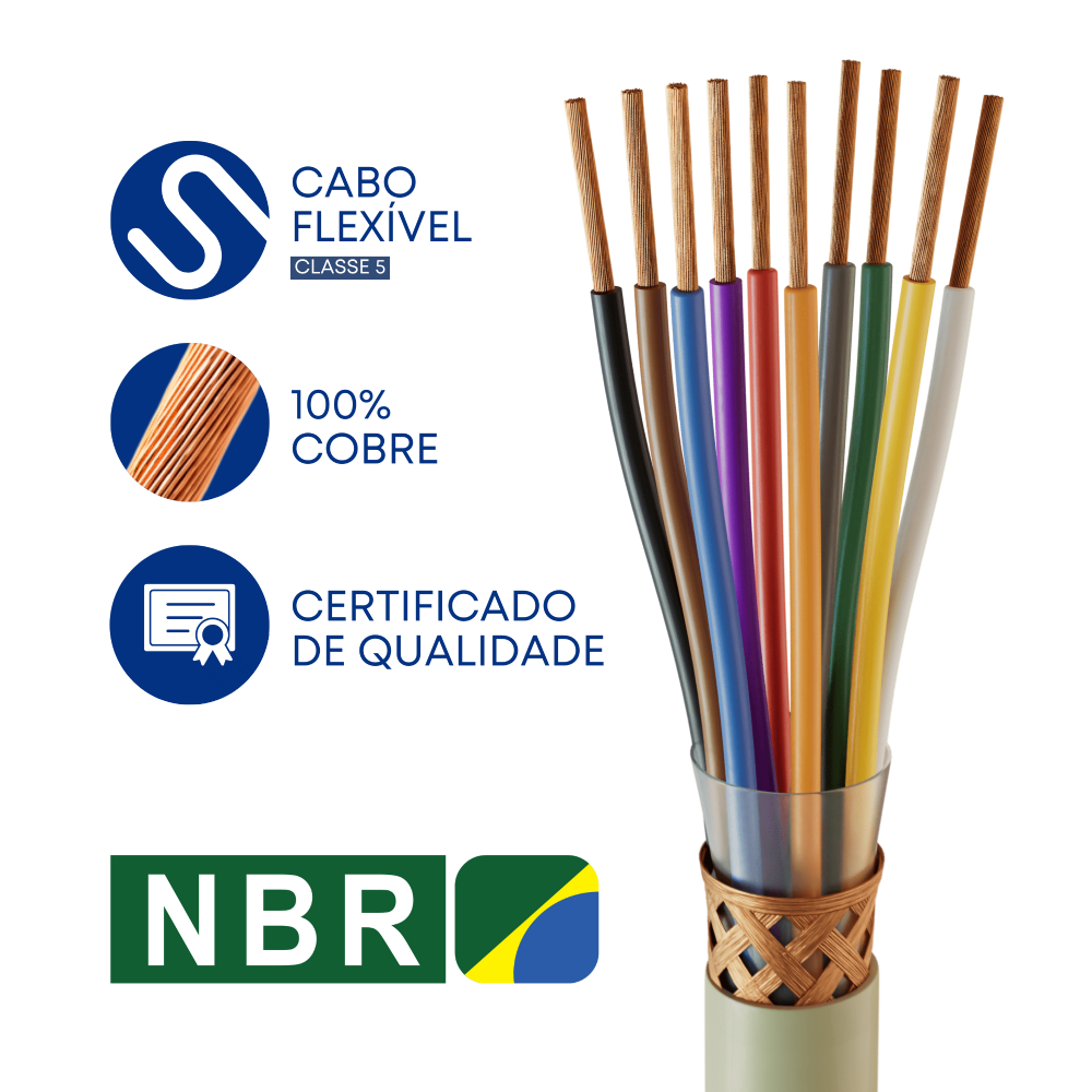 Produto normatizado, de alta qualidade, 100% cobre com certificados de qualidade e laudos de ensaios. Produzidos seguindo as normas RoHS e REACH.
