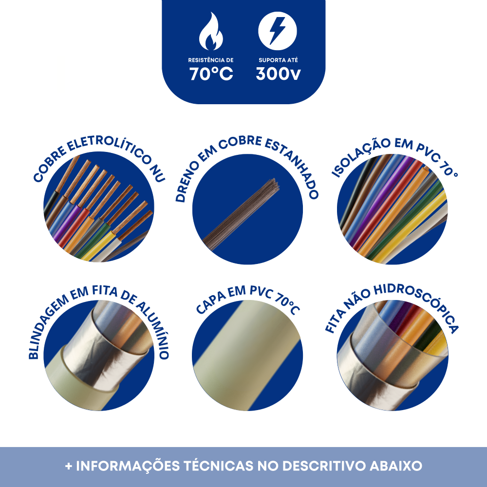Os cabos mangas são utilizados em equipamentos de comunicação e transmissão de sinais balanceados sujeitos a níveis de ruídos, centrais de processamentos de dados, interligação de computadores e periféricos, e automação industrial. Não aceitamos devolução de cabo cortado SOB MEDIDA e Venda por METRO.