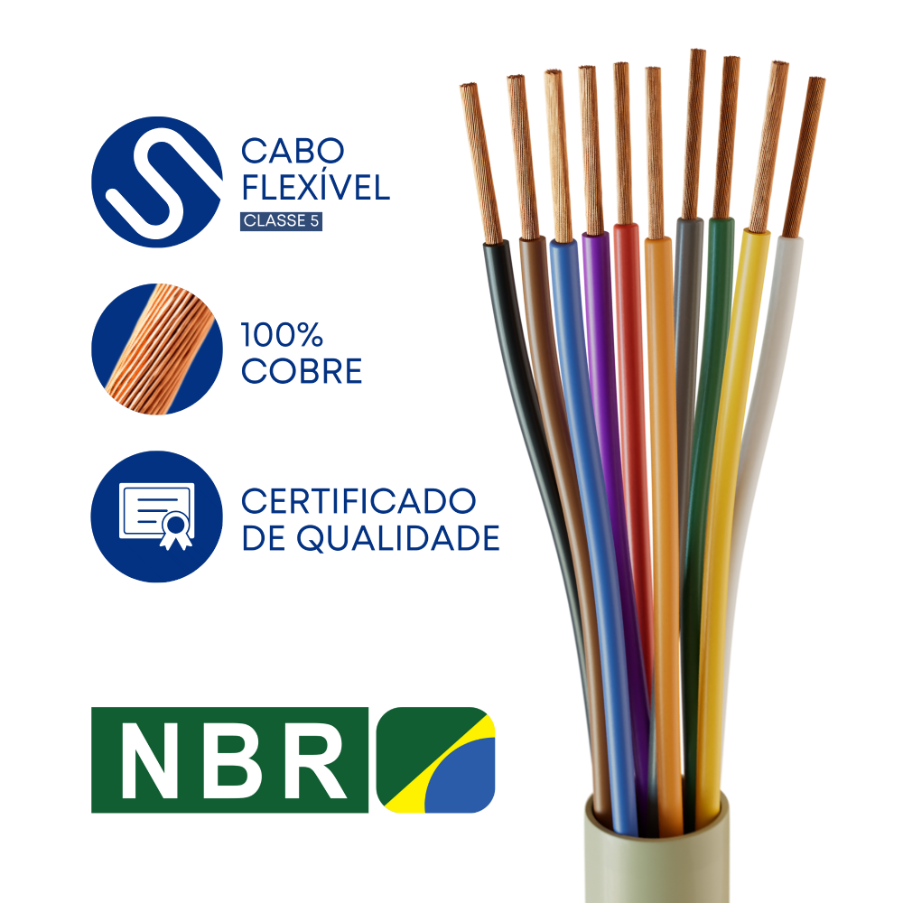 Produto normatizado, de alta qualidade, 100% cobre com certificados de qualidade e laudos de ensaios. Produzidos seguindo as normas RoHS e REACH.