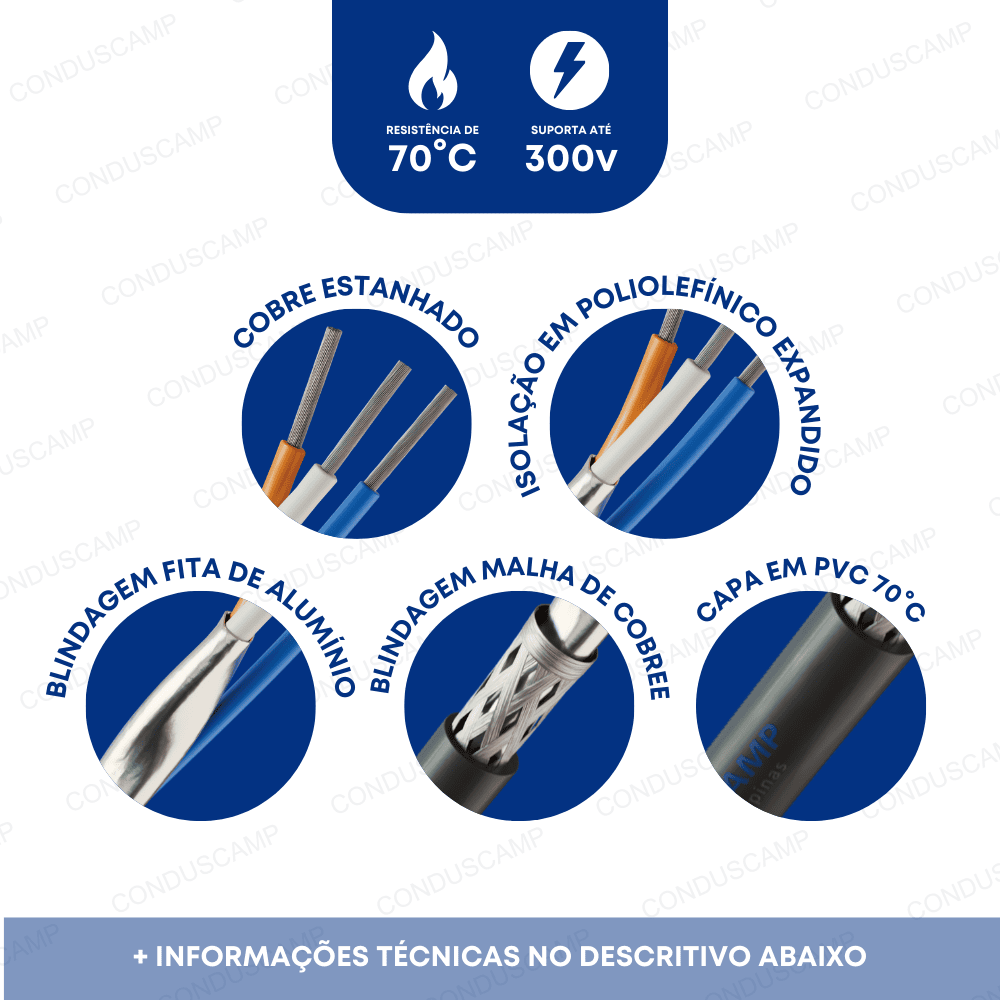 O Cabo Modbus é amplamente utilizado em instrumentação de equipamentos, automação predial e inversores, também utilizado como meio físico de comunicação aberto de dados modbus, protocolo RS-232/RS-485/TCP. Não aceitamos devolução de cabo cortado SOB MEDIDA e Venda por METRO.