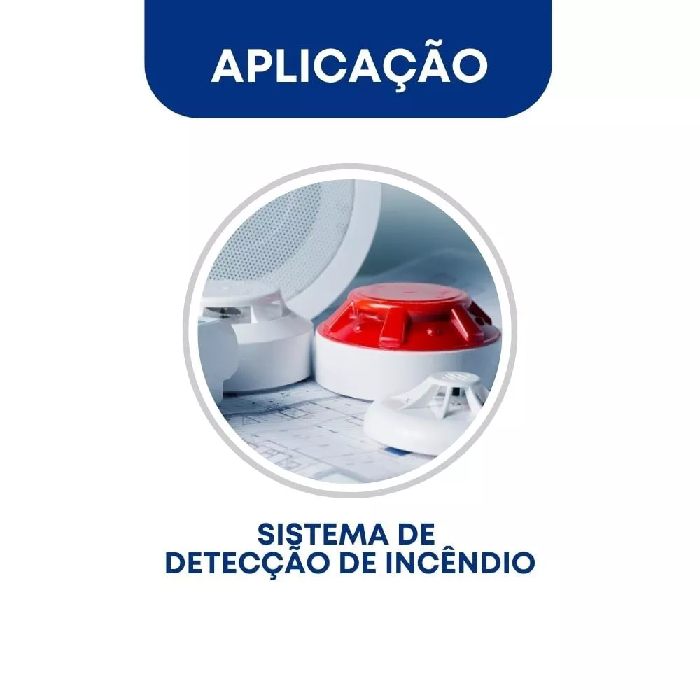 O cabo para alarme de incêndio é utilizado para alimentação de sistema de detecção a alarme de incêndio de forma a evitar que interferências externas afetem os sinais transmitidos. Ele é construído com materiais específicos para que a transmissão dos sinais de alarme seja confiável e segura, mesmo em condições extremas de temperatura e fumaça.
