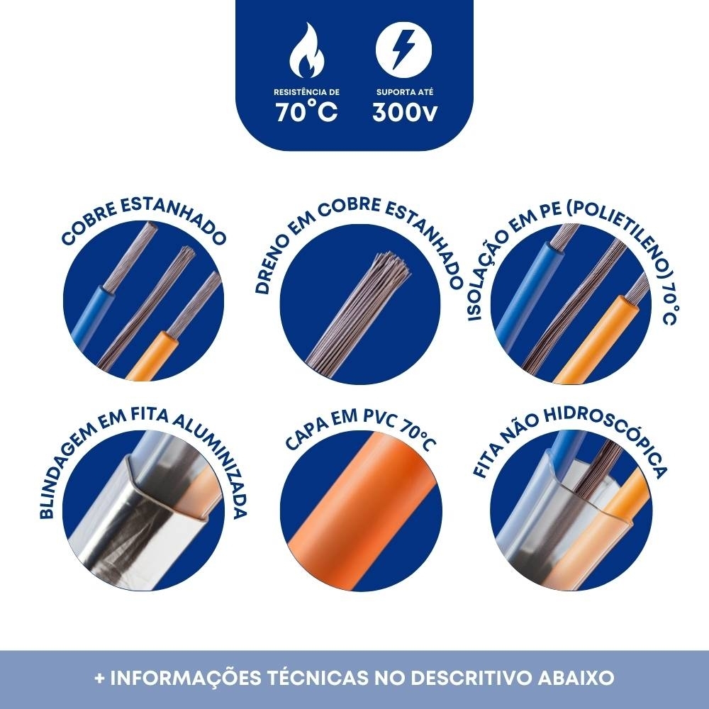 Cabo AFD 2px18 Awg Blindagem Individual em Fita Aluminizada + Dreno Preto