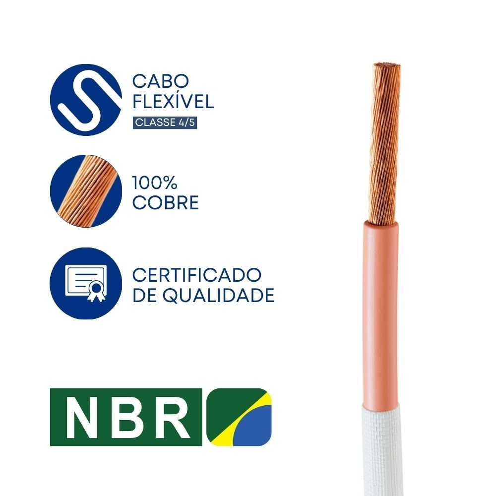 Cabo Silicone 4,00 mm² 300 Graus Com Fibra de Vidro Branco
